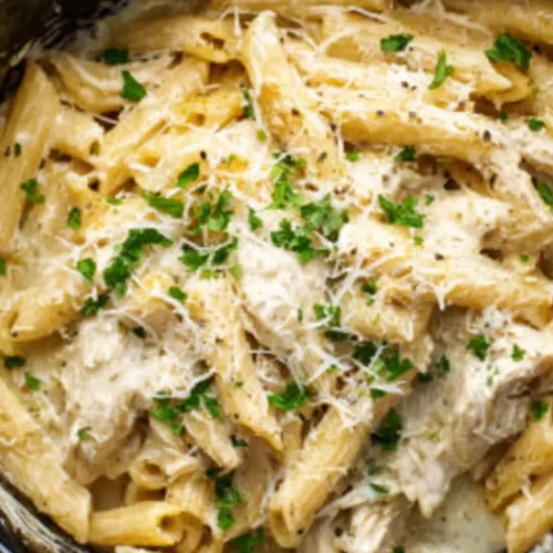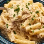 This Crockpot Chicken Alfredo is a creamy, comforting slow cooker pasta dish made with tender shredded chicken, rich Alfredo sauce, and perfectly cooked pasta for an easy weeknight dinner.