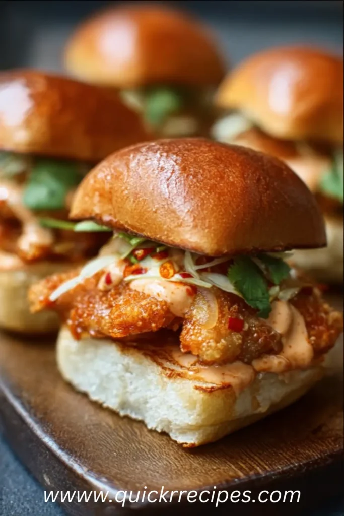 These mini Spicy Bang Bang Chicken Sliders are made with crispy bite‑sized chicken, soft slider buns, and a creamy, sweet‑spicy Bang Bang sauce, perfect for parties, game day, or family snacking.